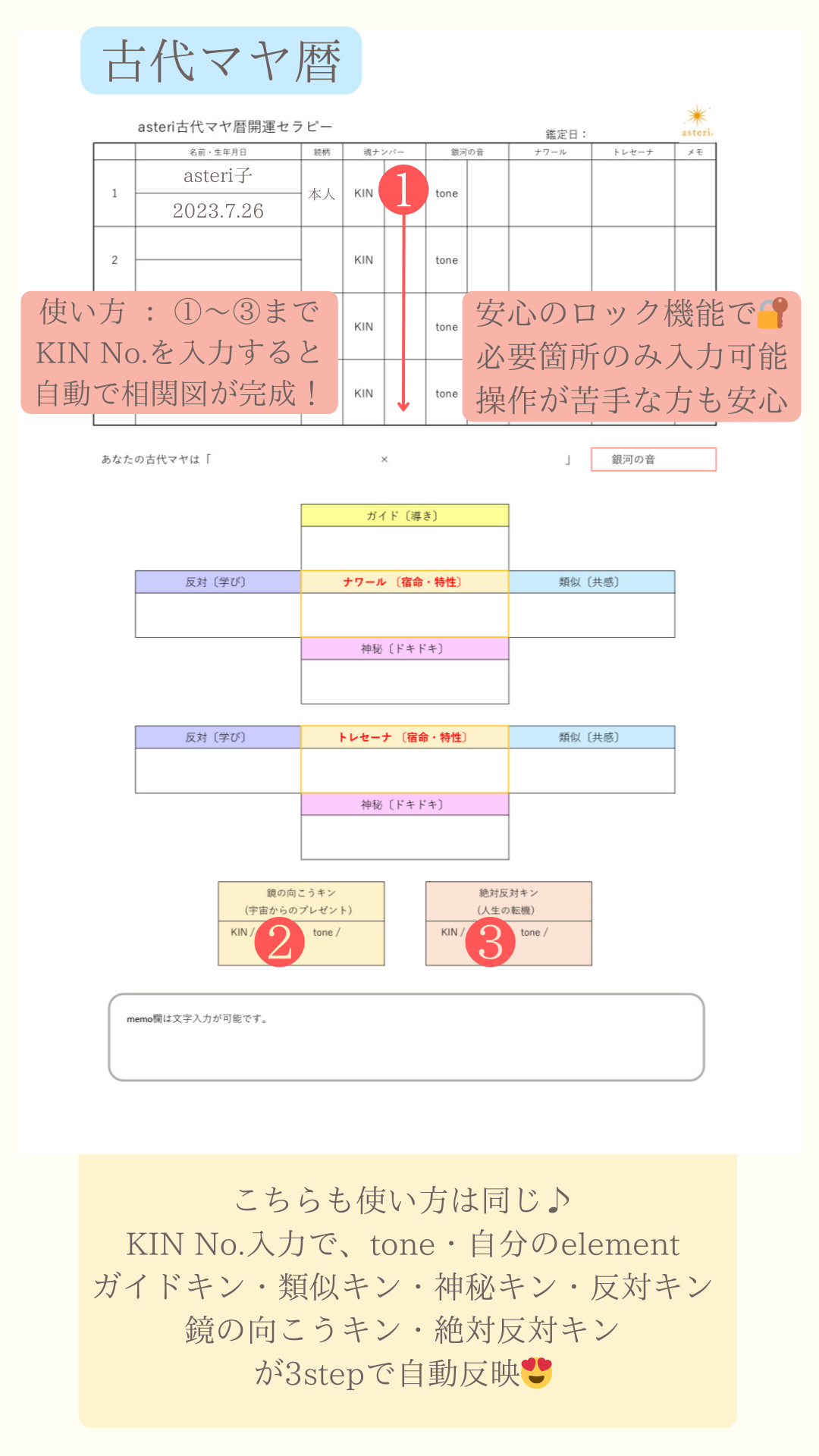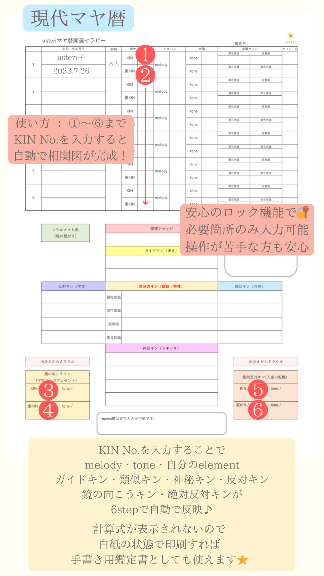 10/20asteriマヤ暦 Excel鑑定書セット
